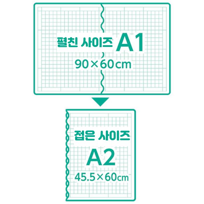 접었을 때 45.5 x 60 cm (A1사이즈)